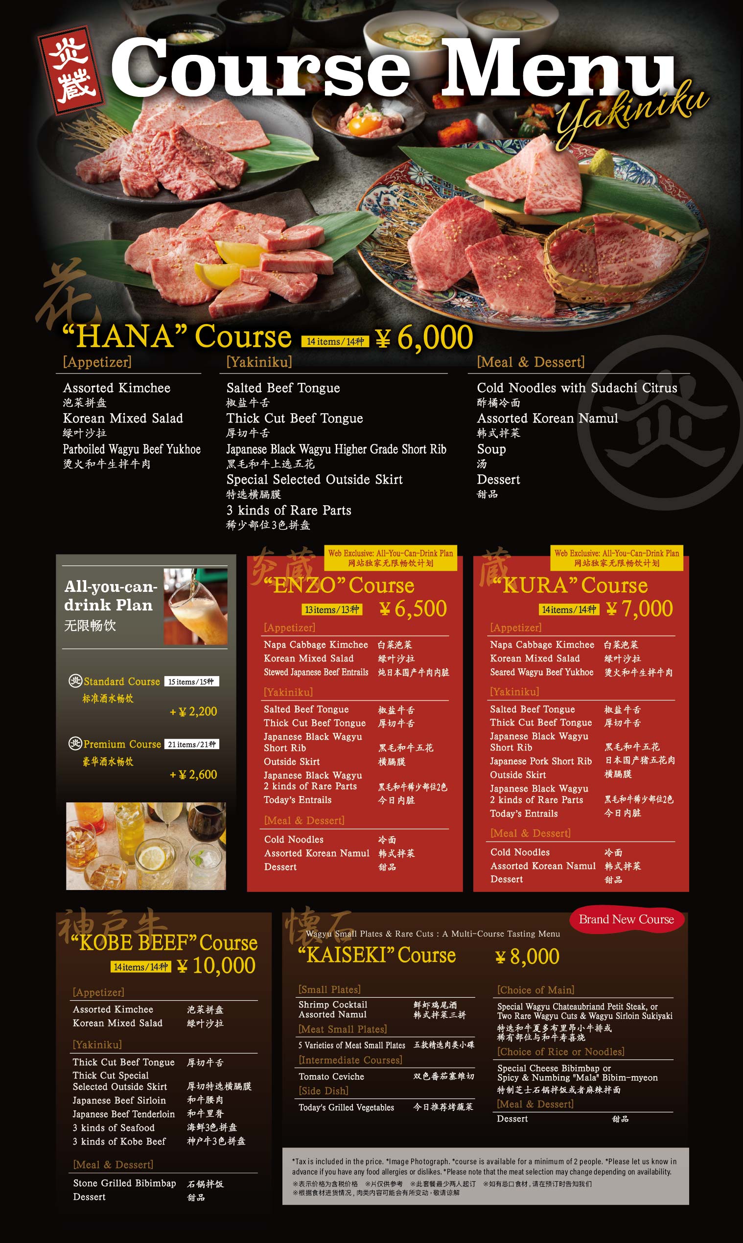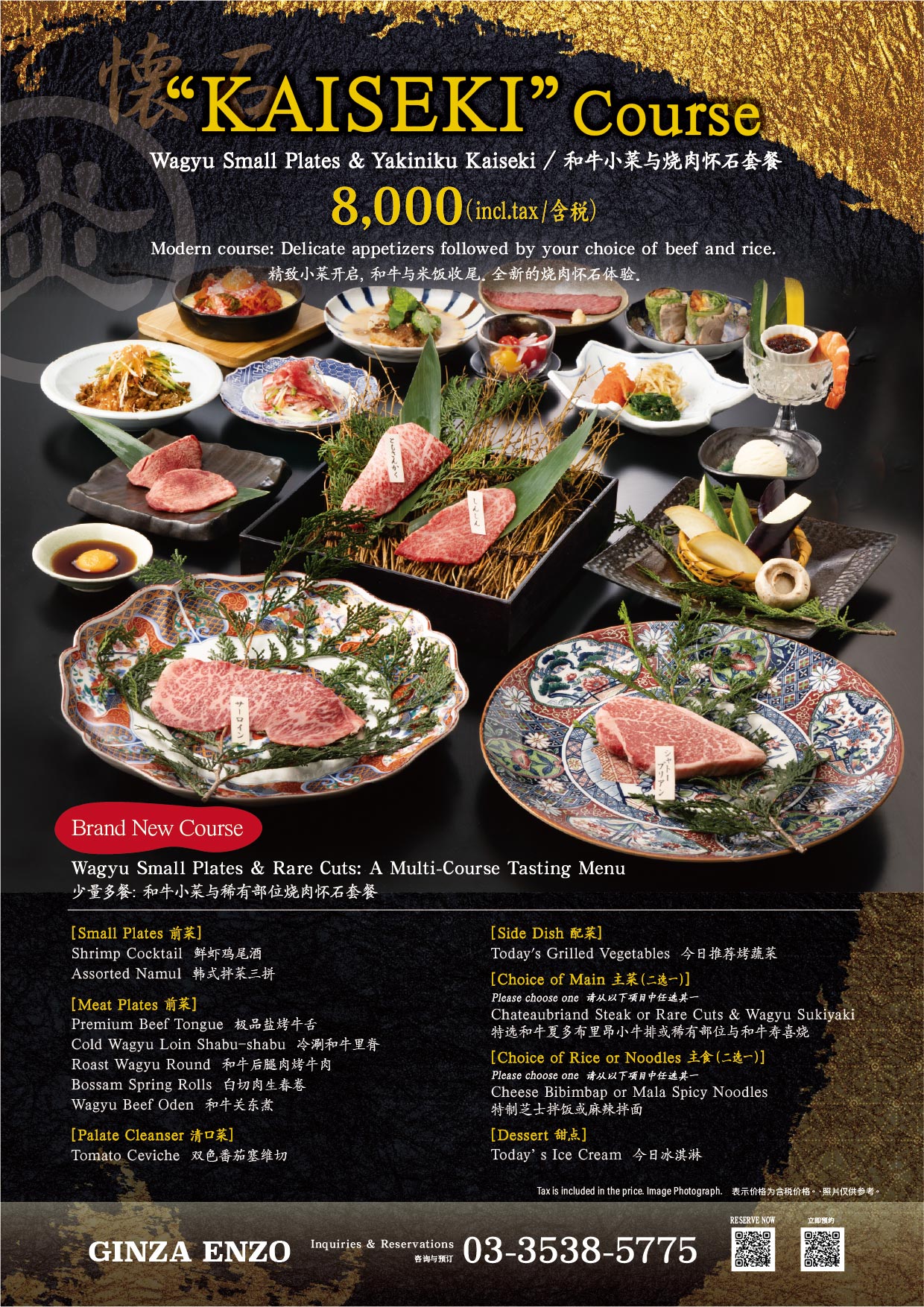 A journey from small delights to a blissful finale.This new course features a variety of small dishes to start, concluding with your choice of meat and perfectly cooked rice. Each dish is individually presented in an elegant Kaiseki-style, making it the perfect choice for hosting your guests, celebrating anniversaries or any special occasion. This new offering from ENZO will grace your occasion and make the event truly memorable.